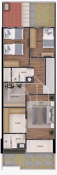 • 3 Quartos (sendo 1 suíte com closet)