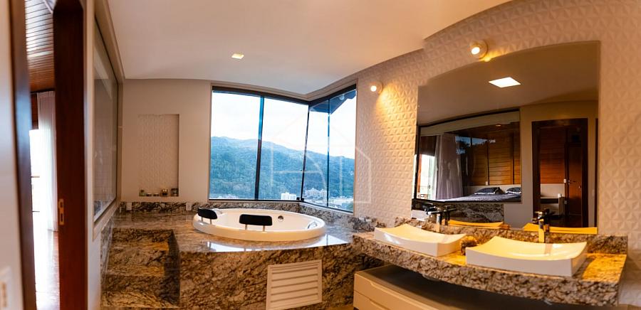 Suíte master com closet, hidromassagem e vista panorâmica